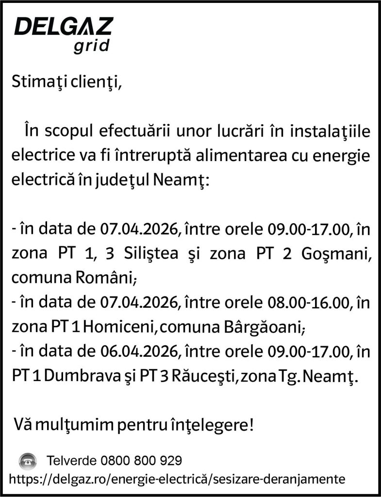 Intreruperi Neamt 03.04.2026