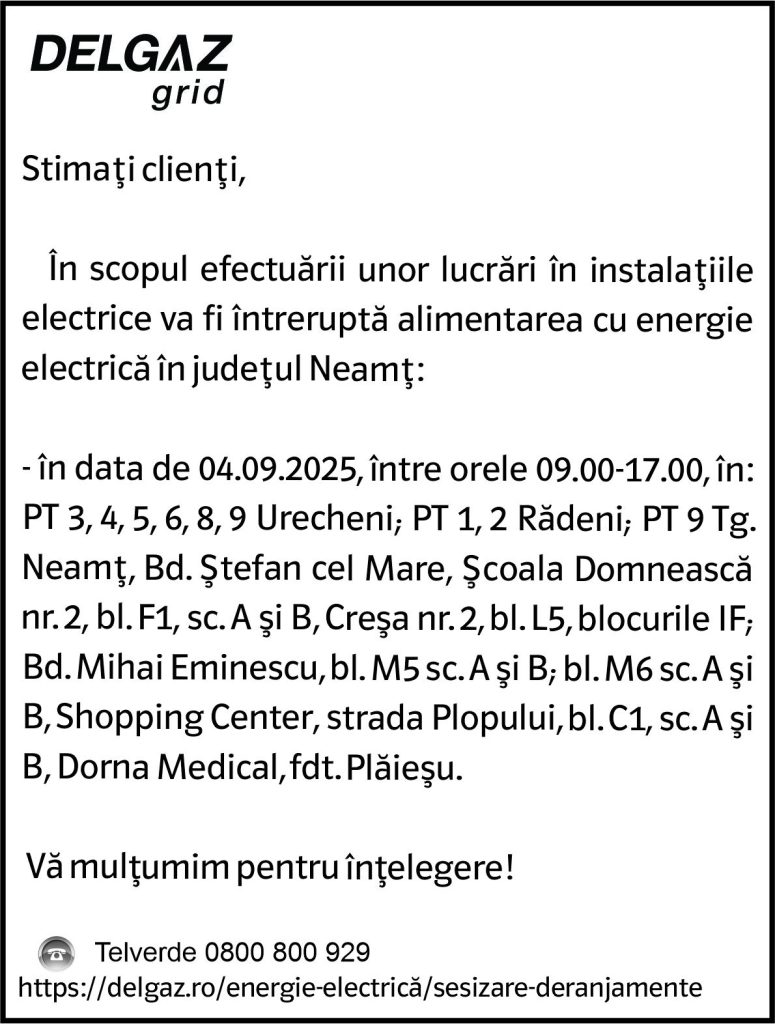 Intreruperi Neamt 1 – 02.09.2025