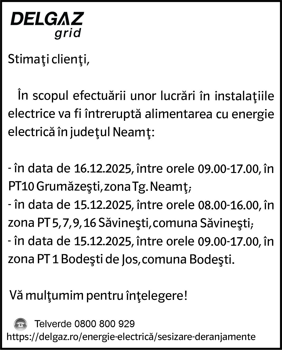 Intreruperi Neamt 1 – 12.12.2025