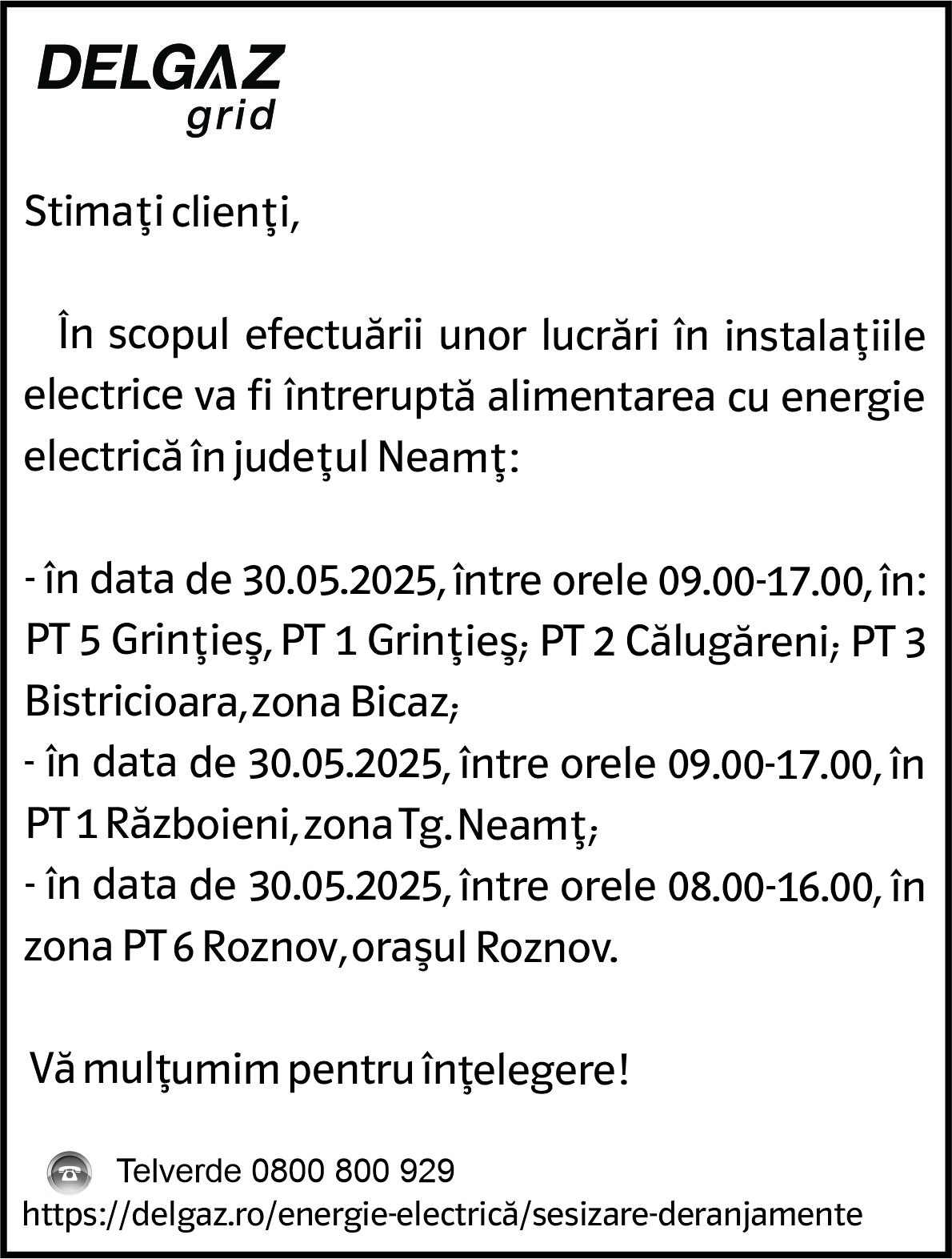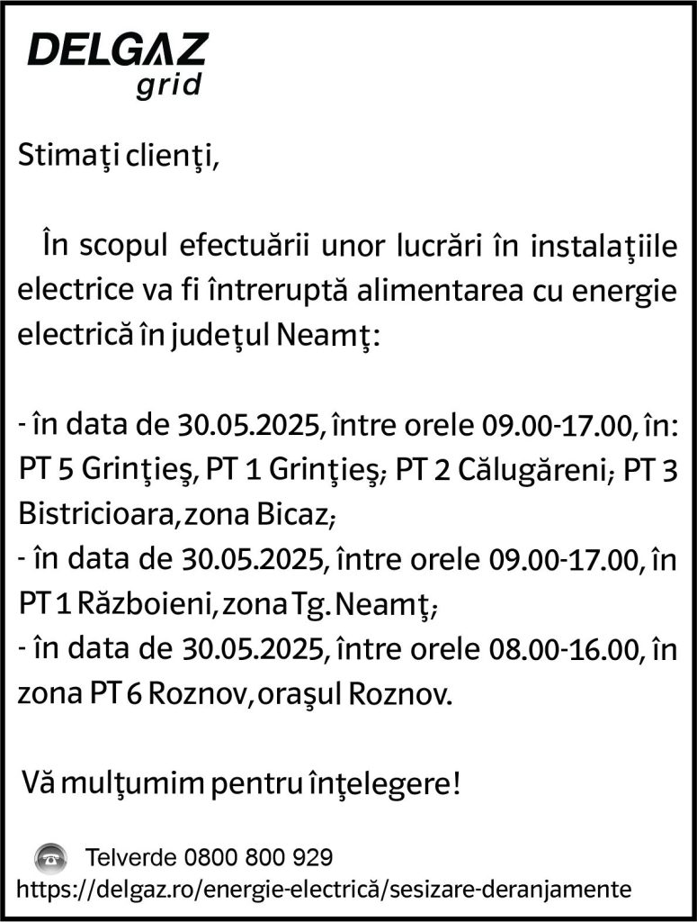 Intreruperi Neamt 1 – 27.05.2025