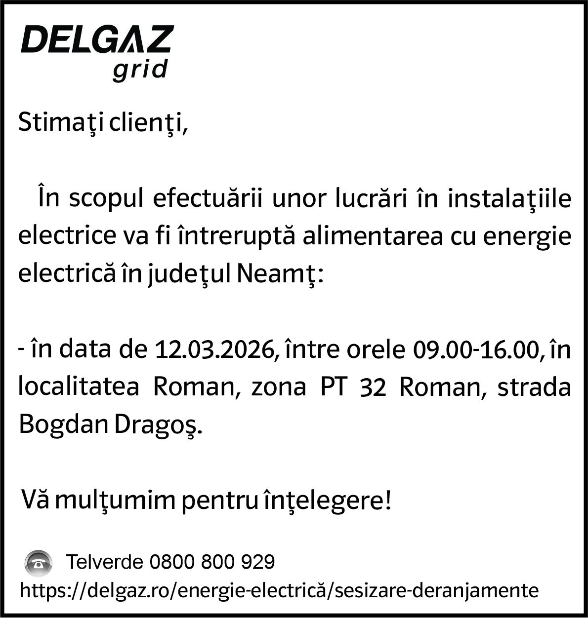 Intreruperi Neamt 10.03.2026