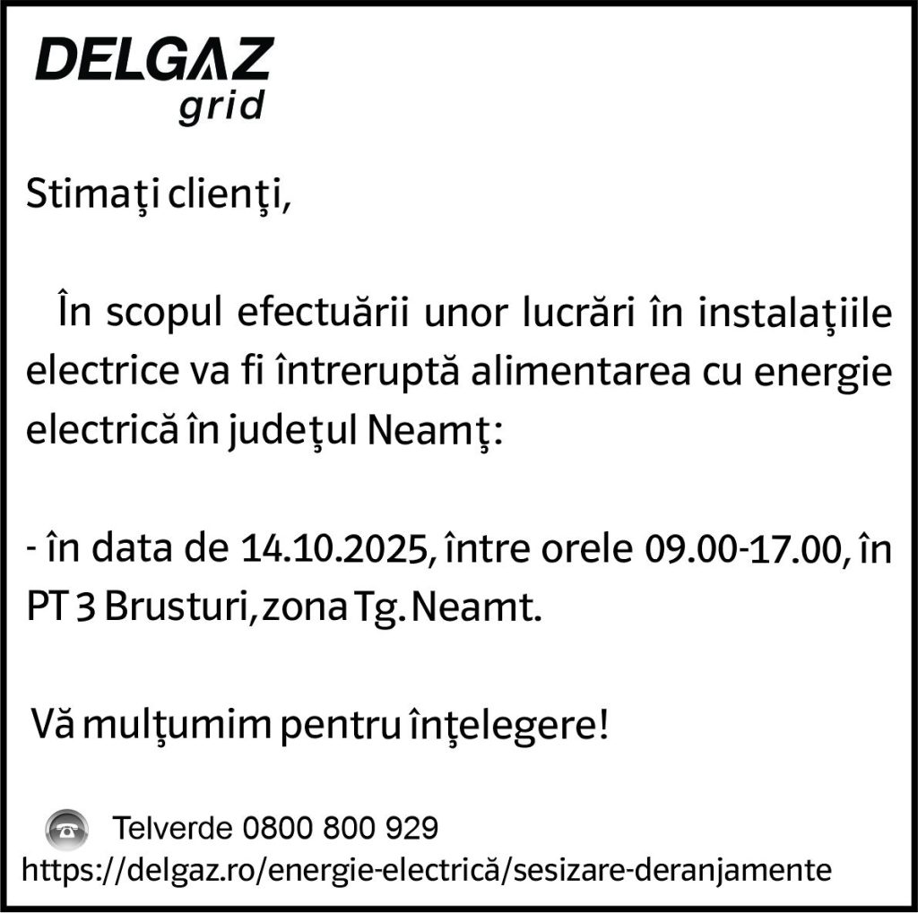 Intreruperi Neamt 10.10.2025