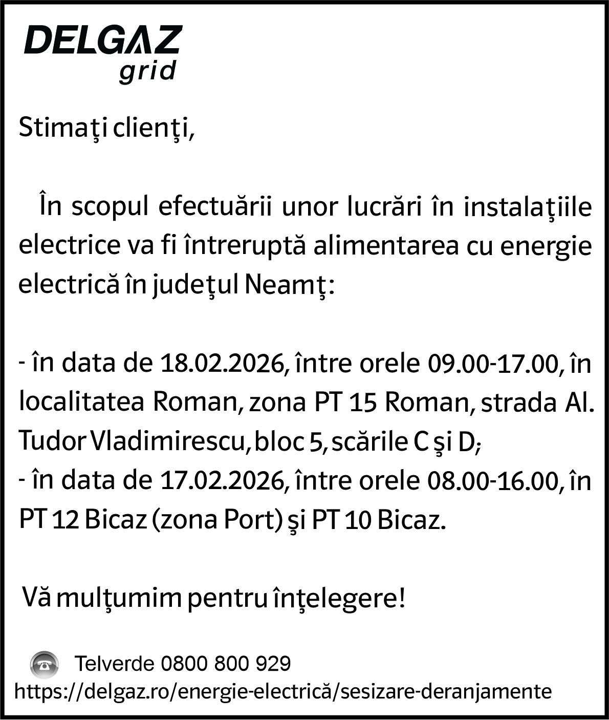 Intreruperi Neamt 2 – 16.02.2026