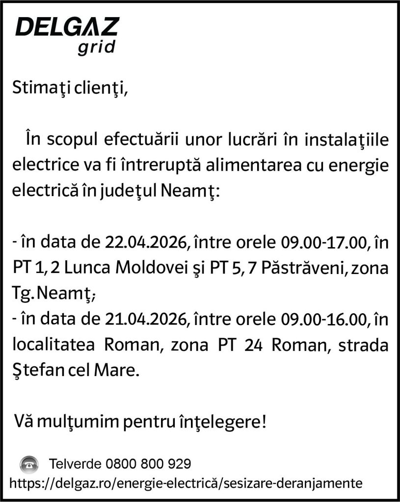 Intreruperi Neamt 2 – 20.04.2026