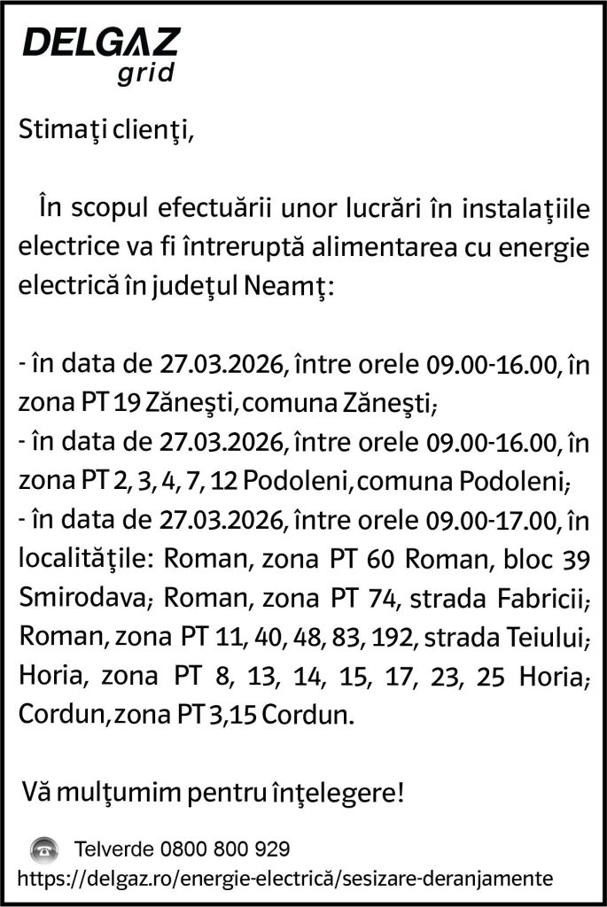 Intreruperi Neamt 2 – 25.03.2026